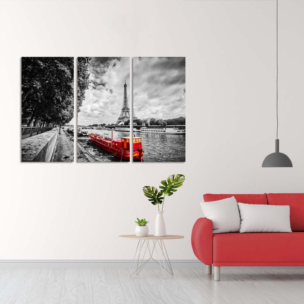 Πίνακας σε καμβά, Red boat in the gray Paris